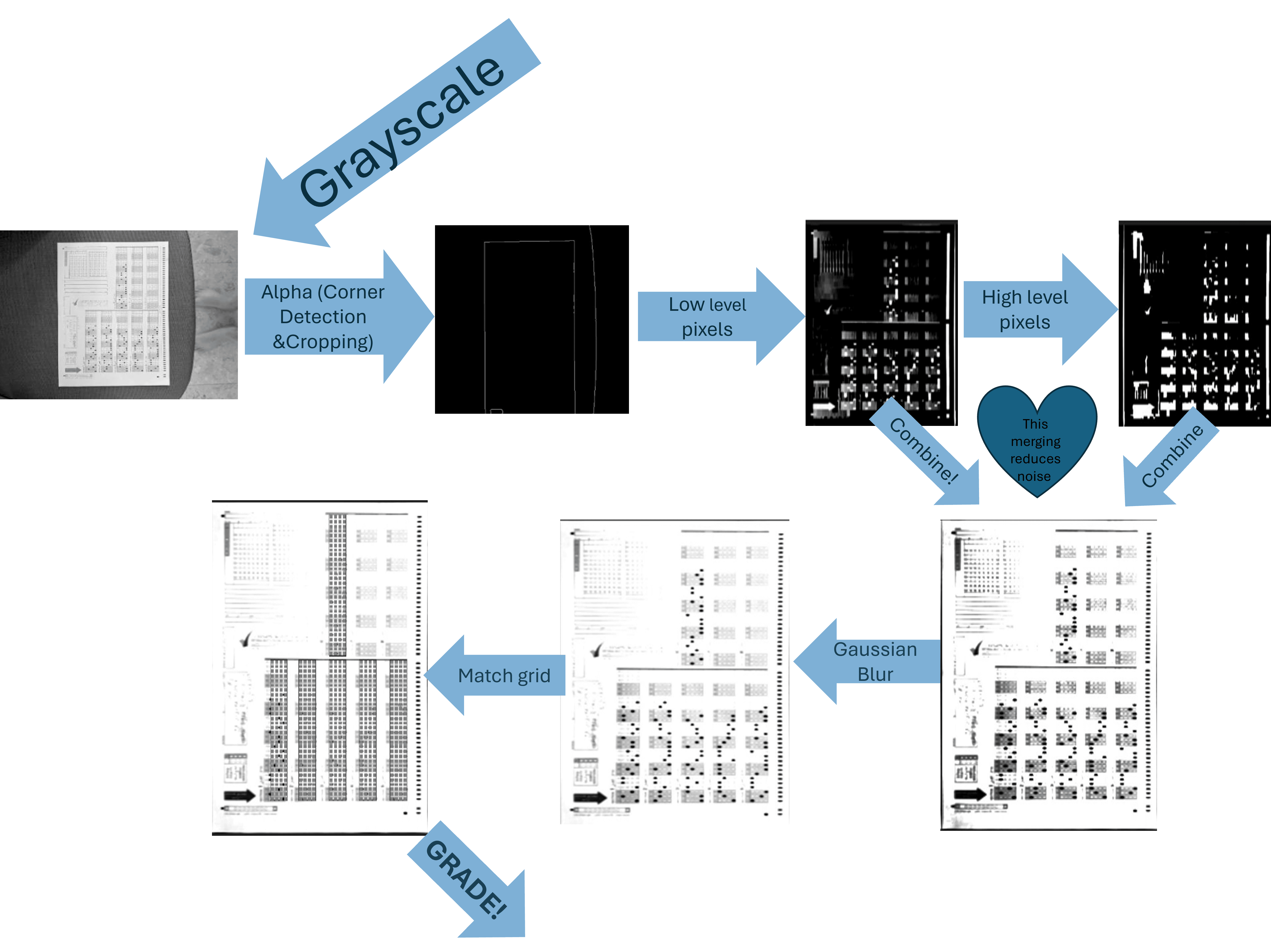It uses my own fork of OpenCV to automatically scan and grade the israeli SAT answer sheet.
